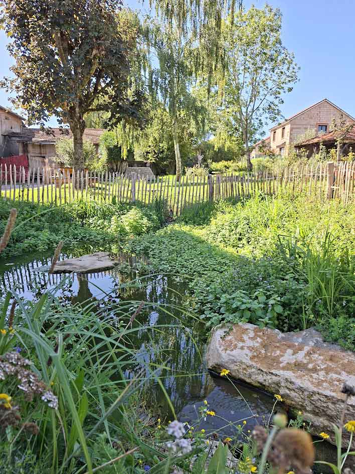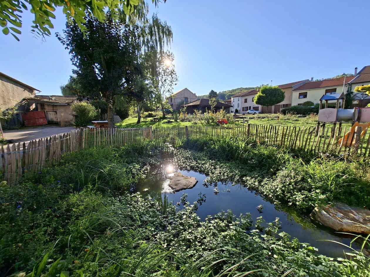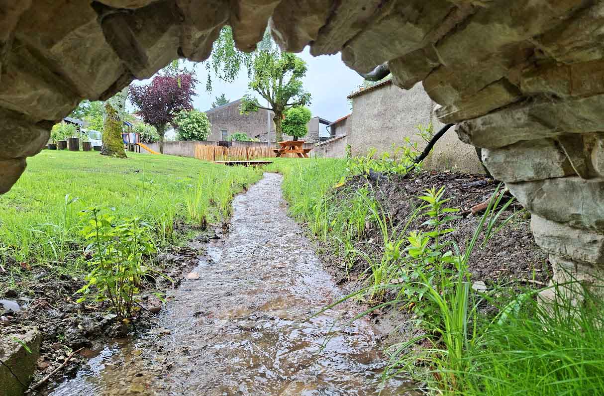 Dans cette commune de Meurthe-et-Moselle, le projet a consisté à redonner toute sa place à l’eau et au vivant au cœur du village. Un ancien ruisseau souterrain a été rouvert sur 35 mètres afin de recréer un cours d’eau visible, naturel et fonctionnel. L’intervention s’est accompagnée d’une renaturation complète des abords et de la place communale, intégrant des usages doux et des aménagements en matériaux naturels.